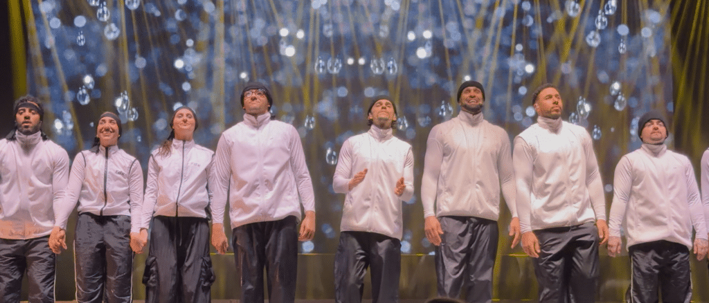 The film could easily have overwhelmed the dancing, but it never does. Instead, it deepens it. Each routine reflects the themes raised on screen. At one point, the dancers move in perfect unison while staring down at imaginary phones in their hands. It’s clever and slightly uncomfortable. Later, a duet strips everything back, showing two people reaching for each other in the simplest, most human way. The contrast between those moments says more than any speech could.