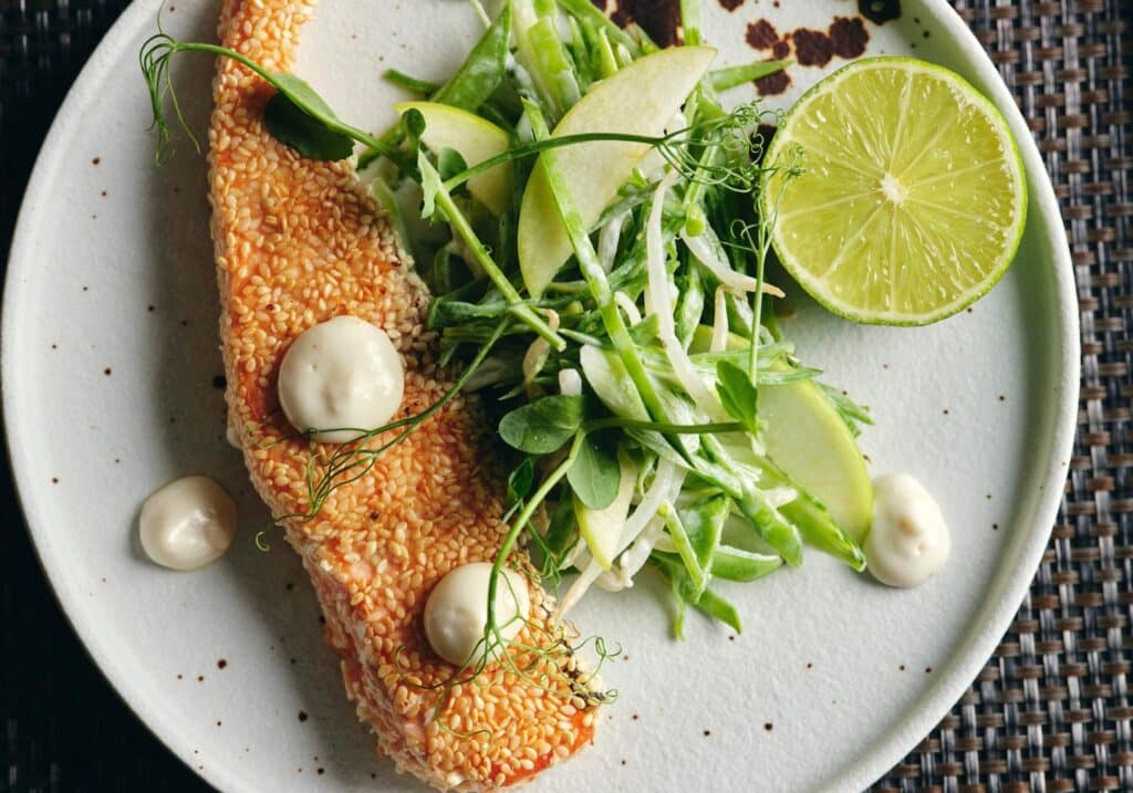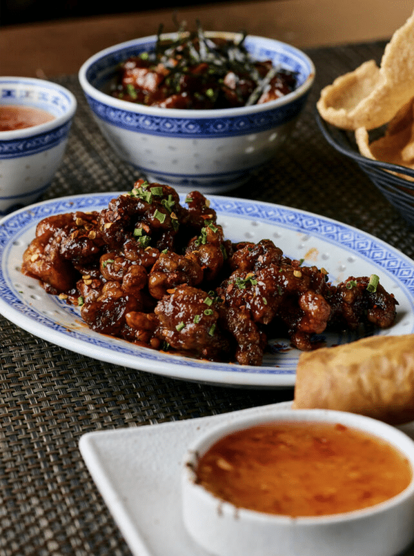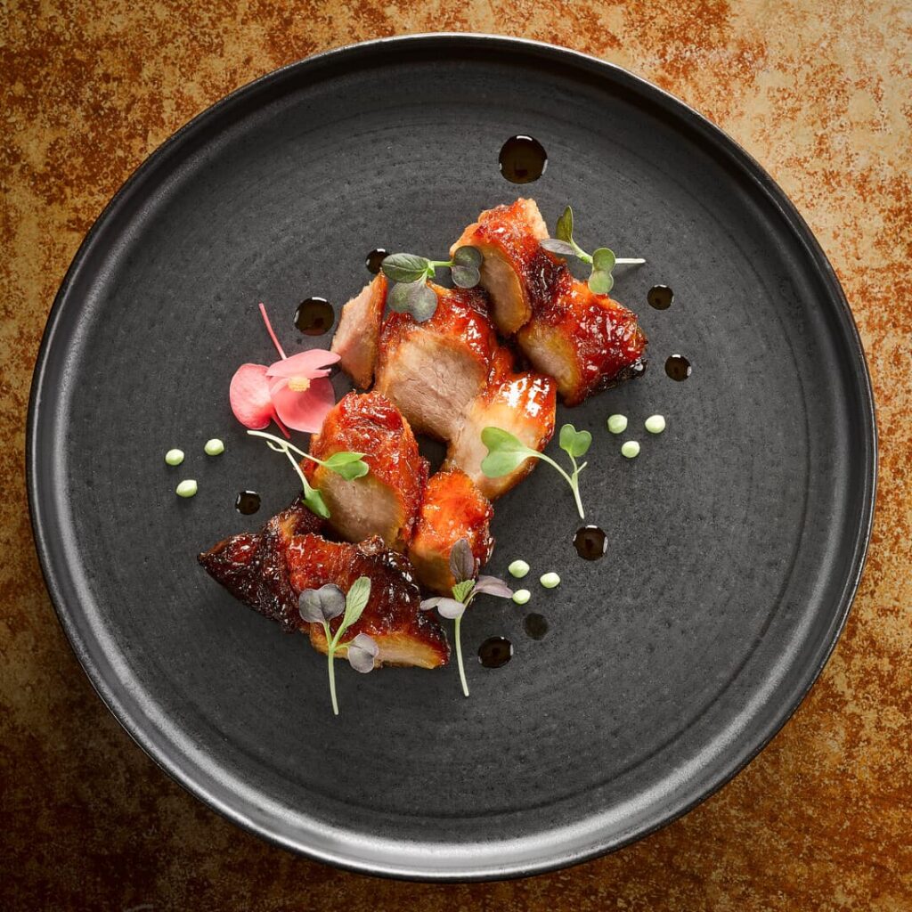 The feast continues with a vibrant spread of sharing dishes that blend tradition with modern flair, such as tuna lou sang, hot oil seared seabass with soy dashi, Hong Kong-style crispy pork belly with truffle hoisin, and eight-treasure fried rice finished with Szechuan chilli oil.