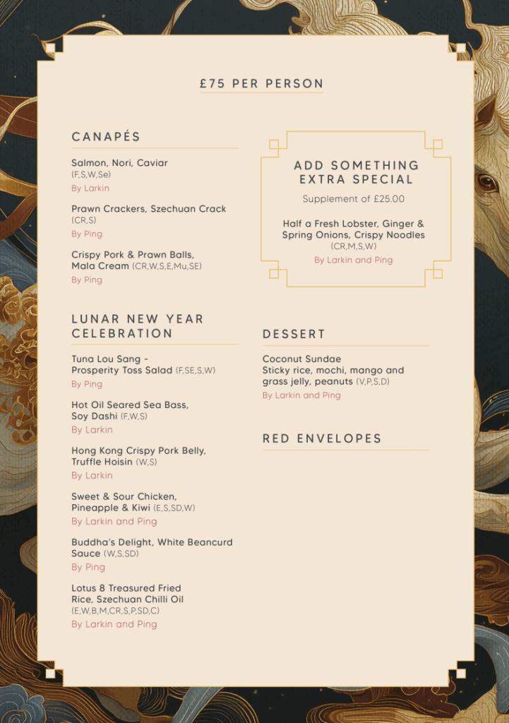In an exclusive collaboration, LARKIN CEN (MasterChef Finalist 2013 and Welsh representative on The Great British Menu 2022 & 2024) joins forces with PING COOMBES (MasterChef Champion 2014 and MasterChef Champion of Champions 2022) to create a one-of-a-kind event inspired by the spirit and symbolism of the Lunar New Year.