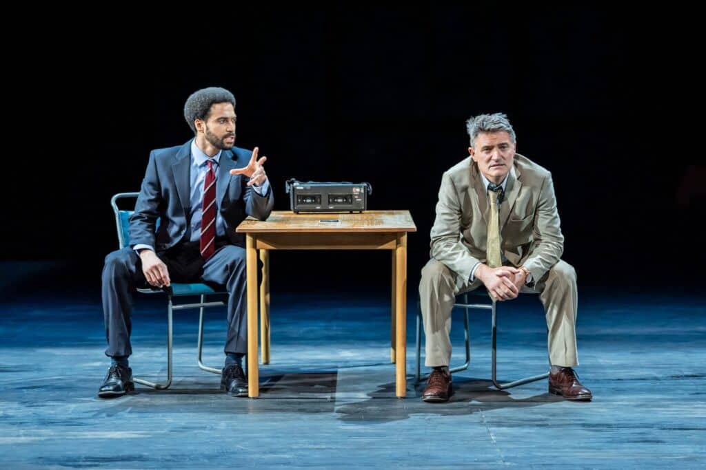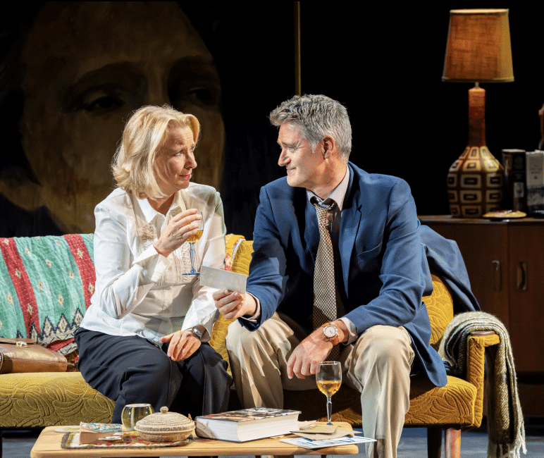 The set deserves special mention. Designed to transform fluidly between locations, it captures both the solidity and the unease that underpin the story. Without overwhelming the action, it creates a world that feels theatrical yet grounded, supporting the play within a play conceit beautifully. Lighting and sound are used with restraint and intelligence, enhancing mood rather than dictating it.