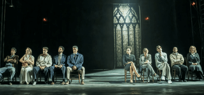The set deserves special mention. Designed to transform fluidly between locations, it captures both the solidity and the unease that underpin the story. Without overwhelming the action, it creates a world that feels theatrical yet grounded, supporting the play within a play conceit beautifully. Lighting and sound are used with restraint and intelligence, enhancing mood rather than dictating it.